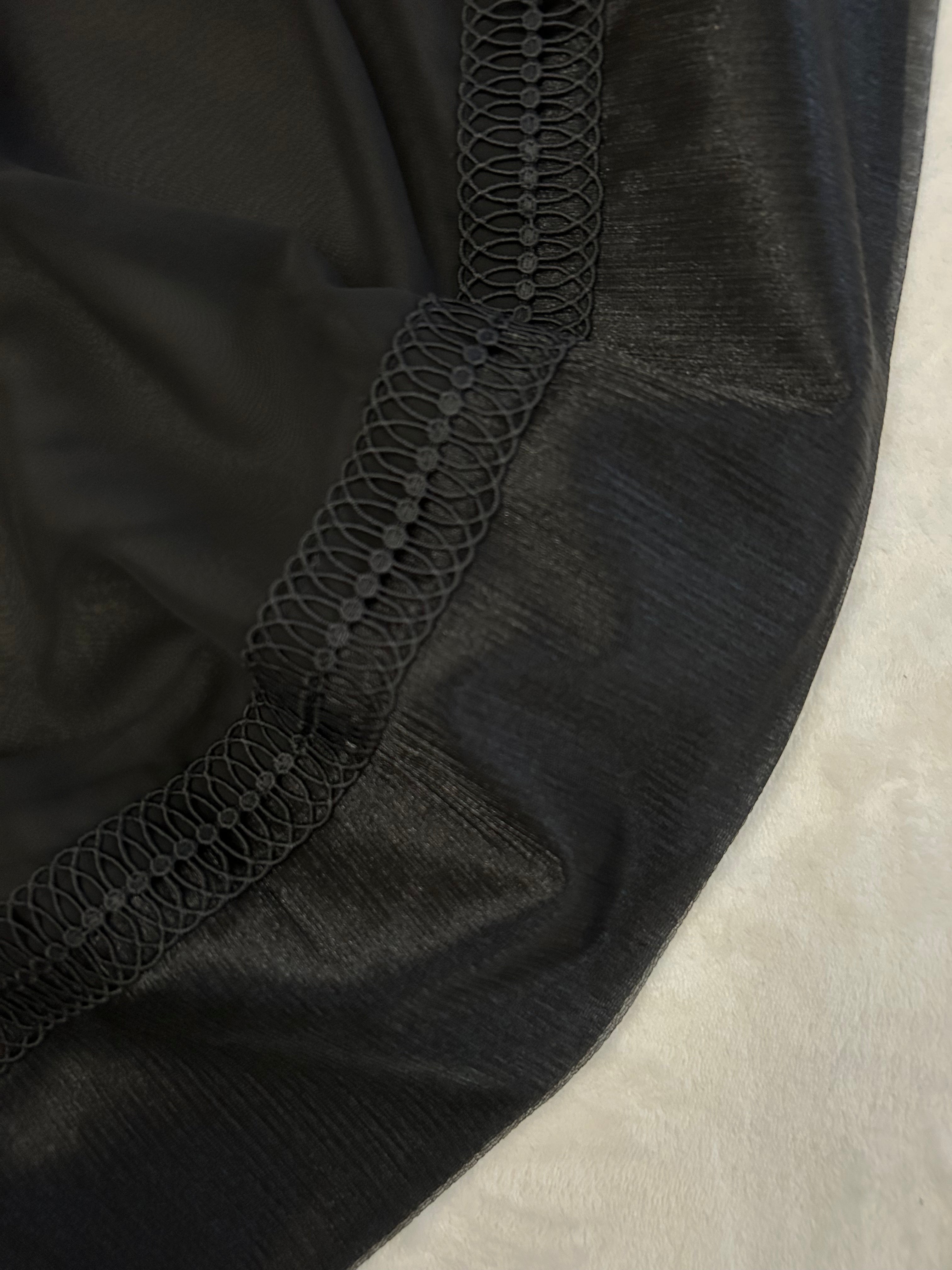 Description: Our exclusive hijabs are made in Dubai Chiffon, a smooth and high-quality fabric that drapes so perfectly. These hijabs feature gorgeous and unique trims on both short ends.