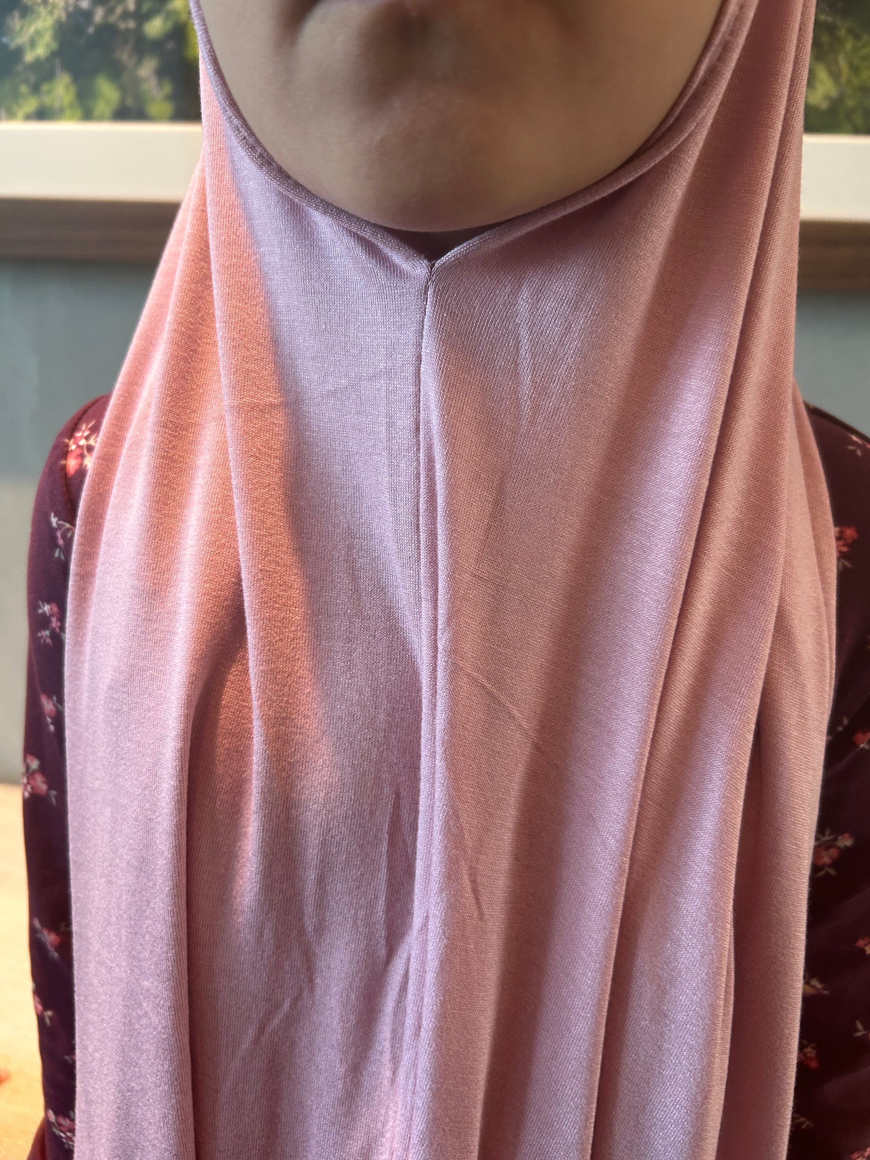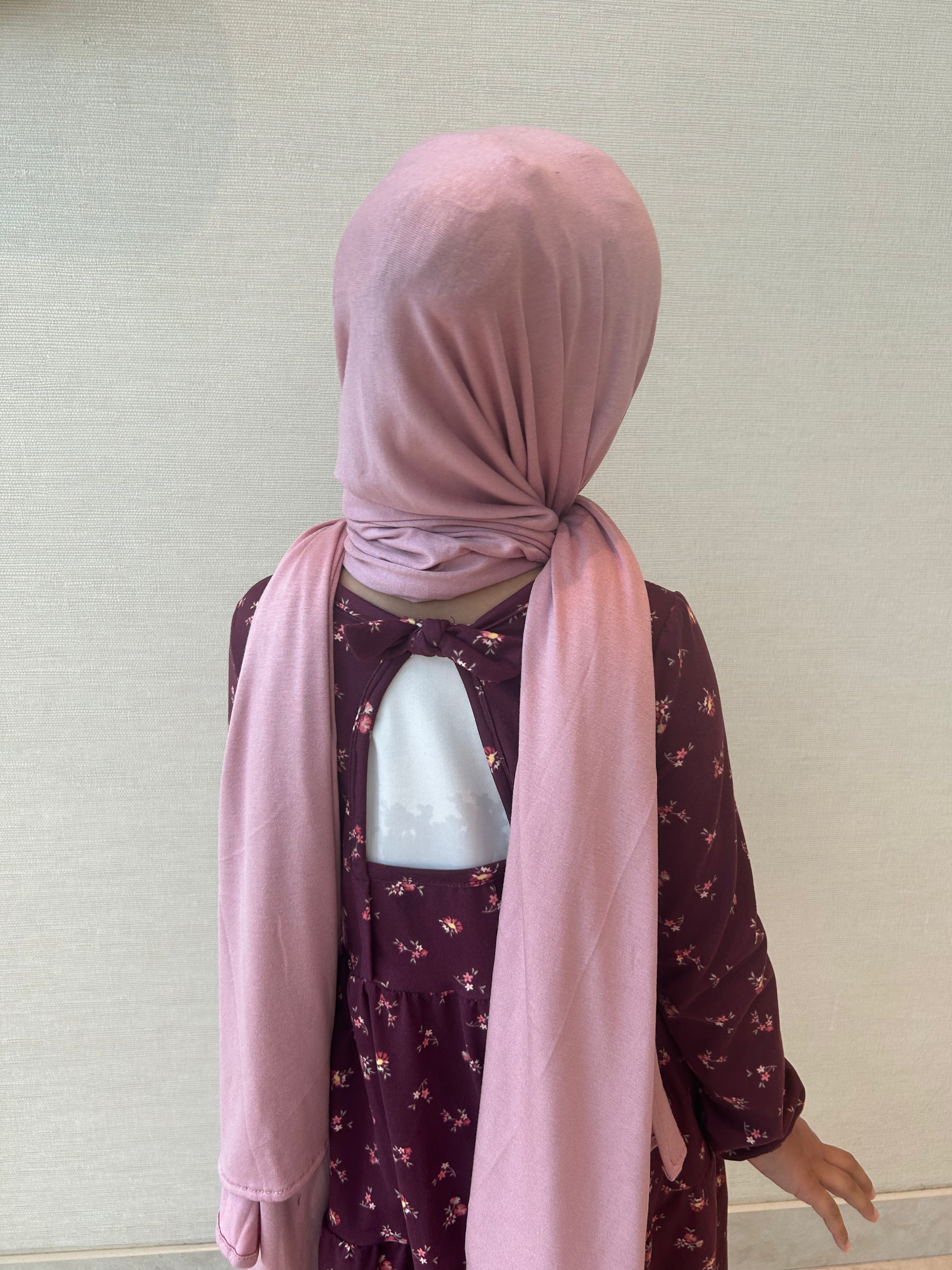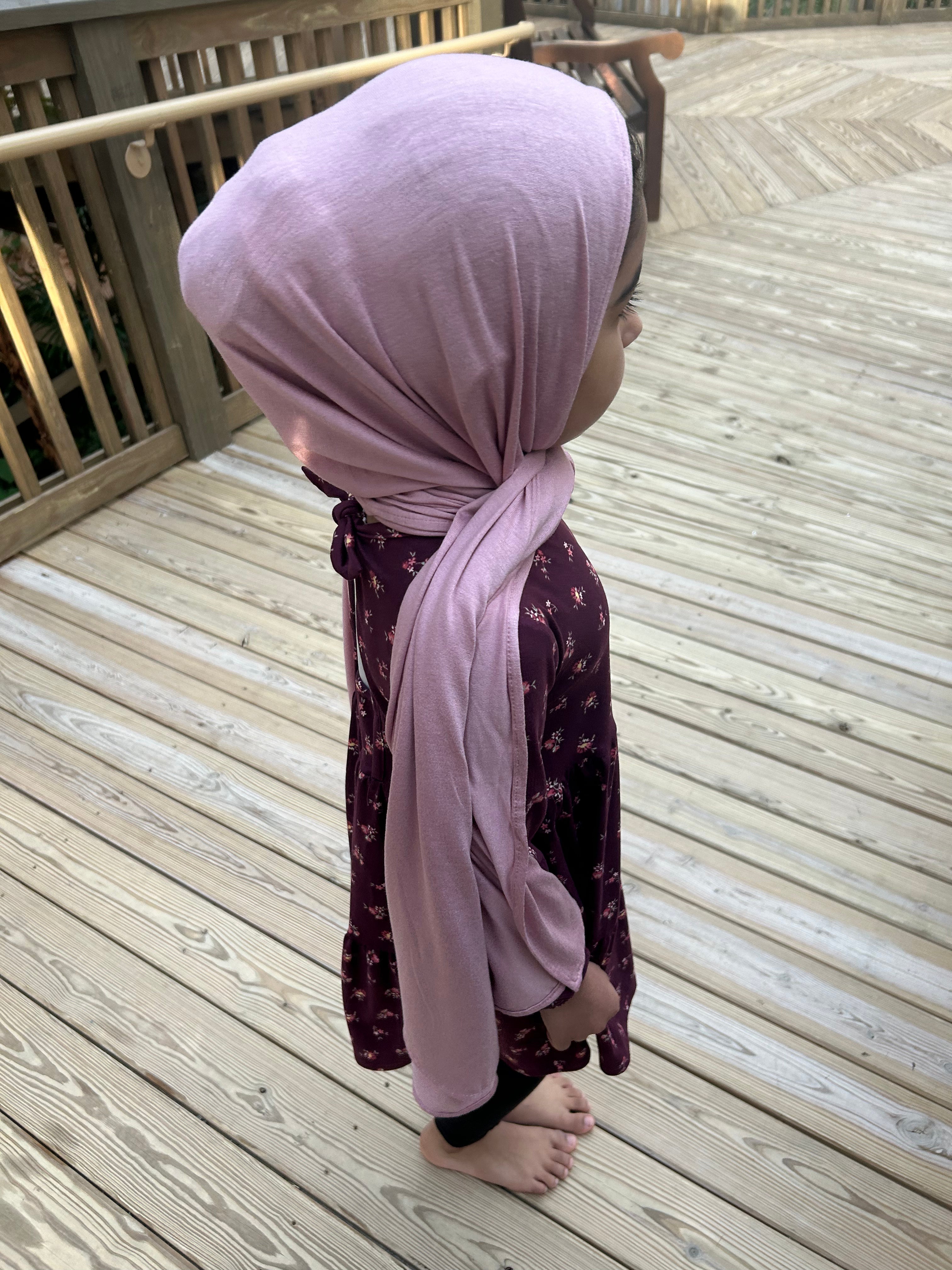 Description: This hijab was made for convenience and an easy, put-together but totally effortless style! This one is made in the softest jersey fabric and is stitched under the chin with both sides being the same length so they can both be thrown back and you're on your way! It doesn't get any easier than this hijab. This hijab is meant for ages 9 and up, but is shown on a 5 year old, and it totally works!