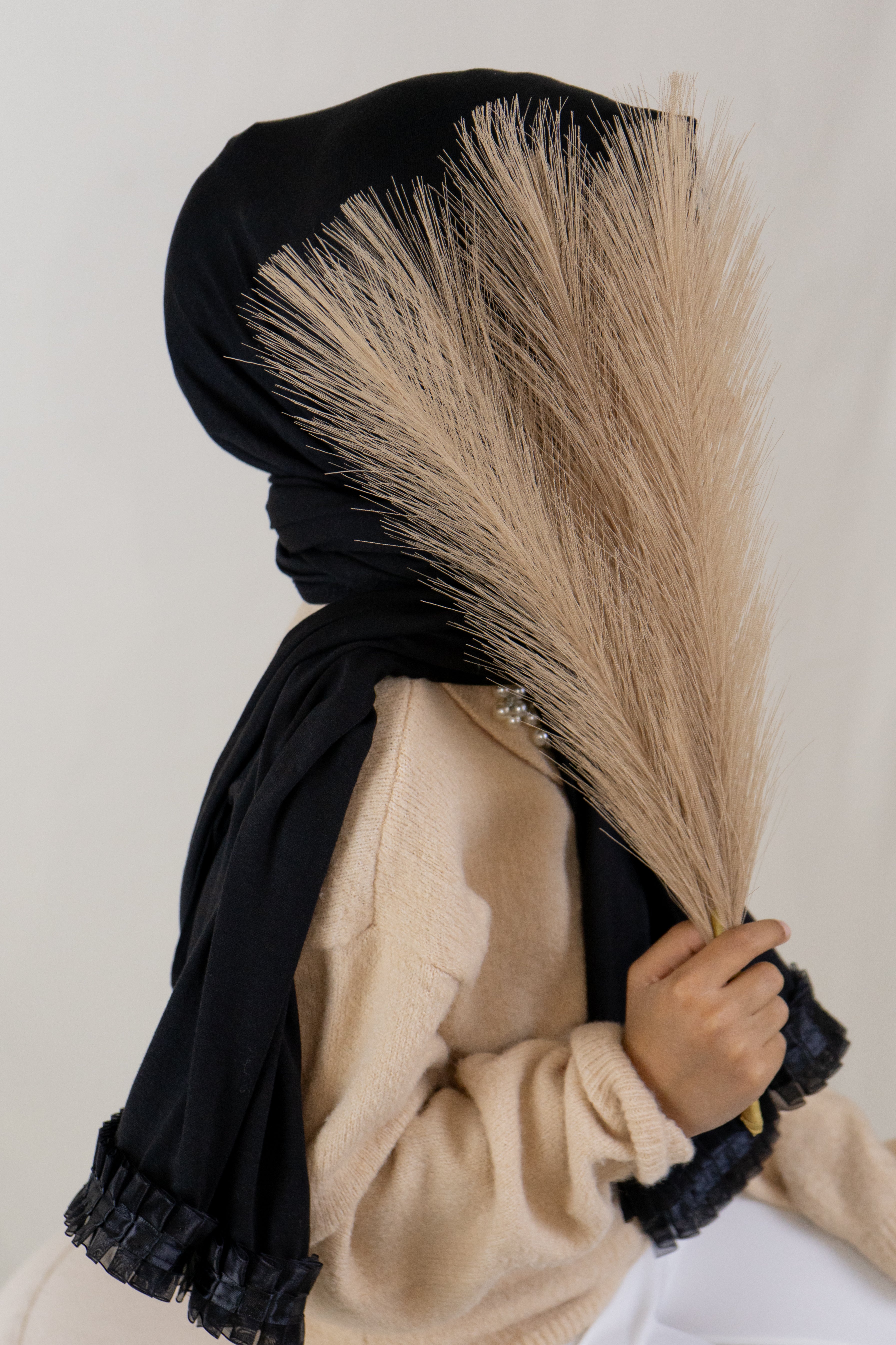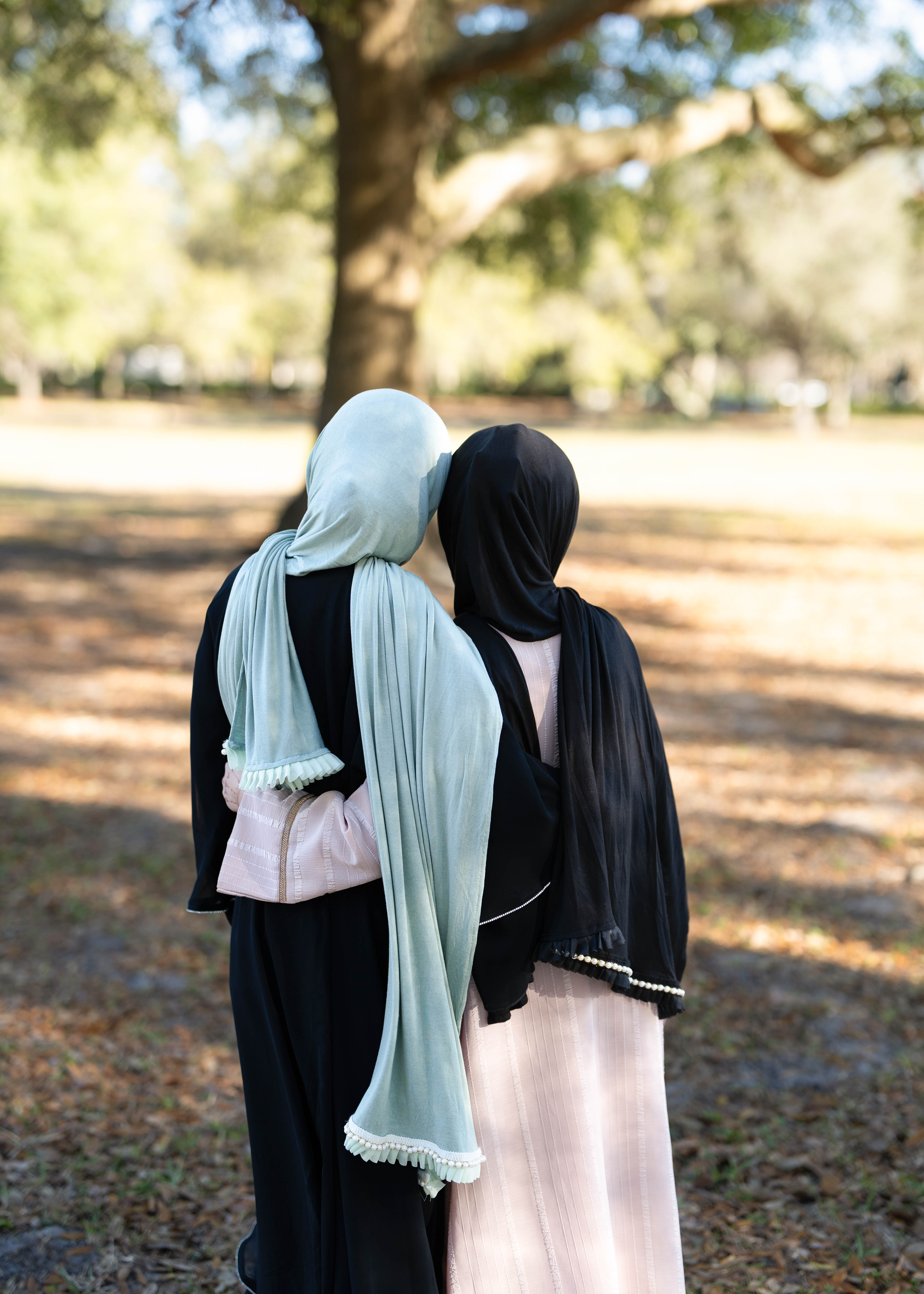 Description: Your littles need fancy hijabs too! Let them feel super fabulous and beautiful in our exclusive collection of hijabs for them - made in a soft jersey fabric so they stay put and are easy to style and wash, but a little fancier, with trims on both ends so they love wearing them! Inspired by our little Z.