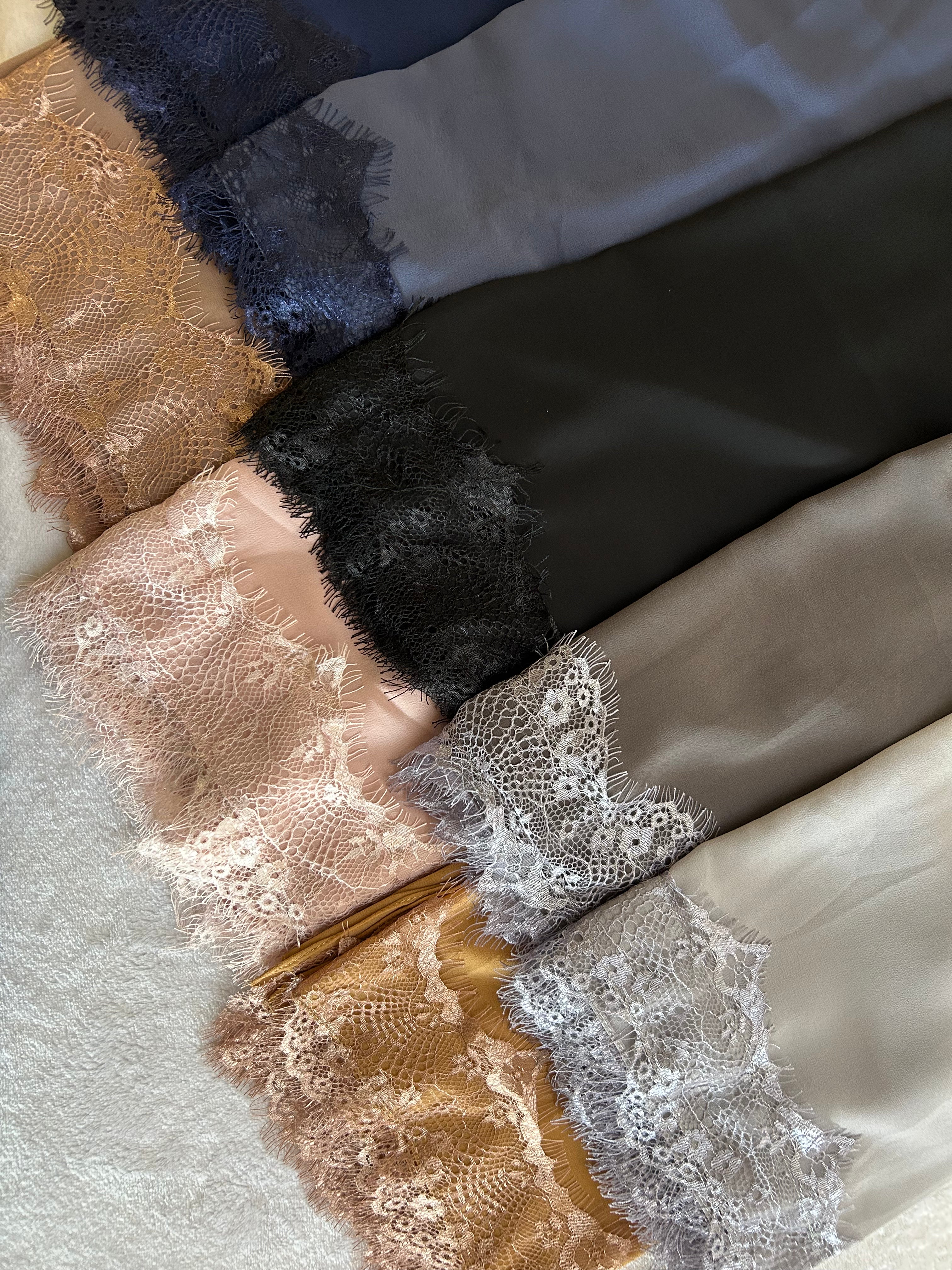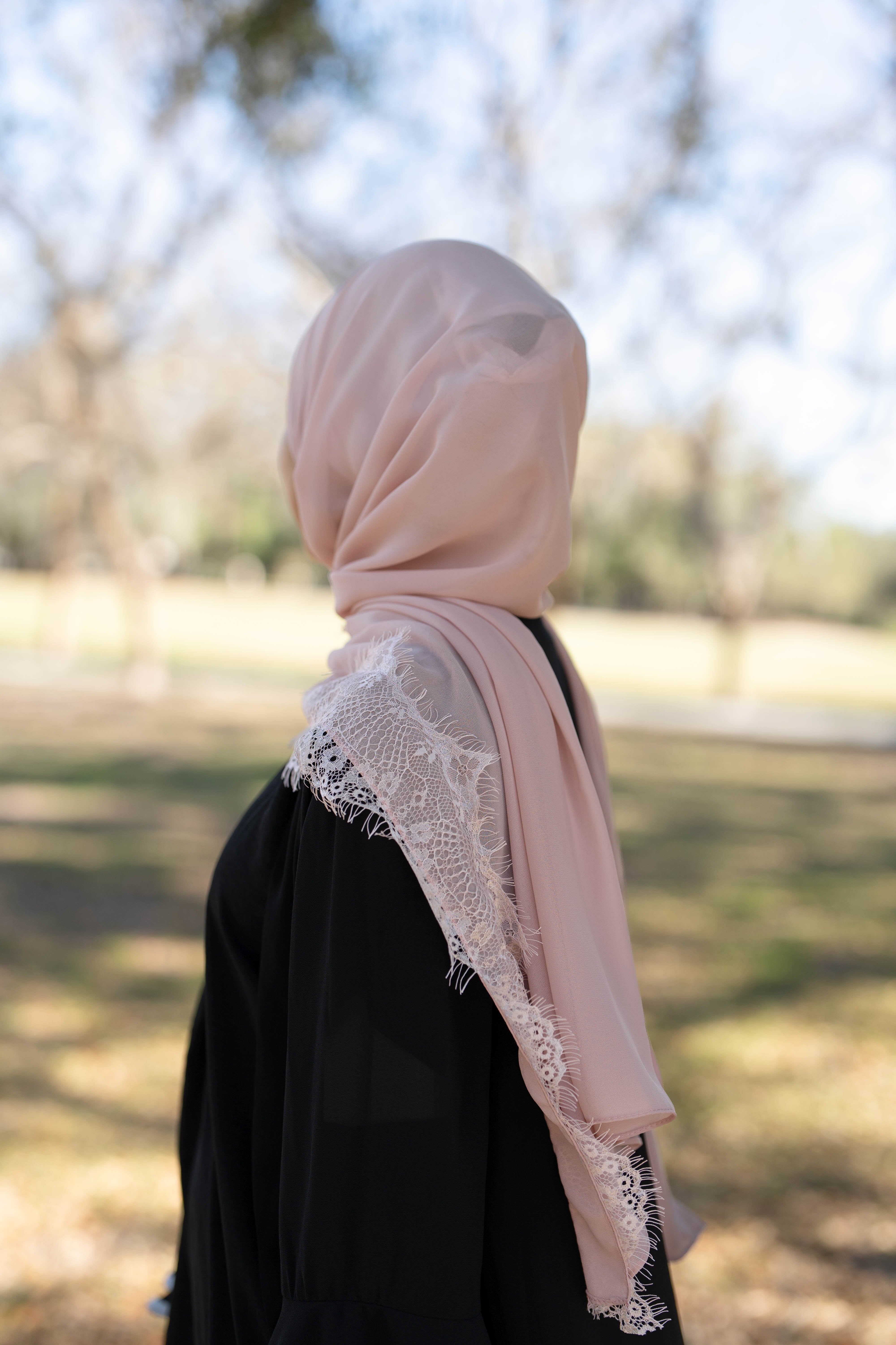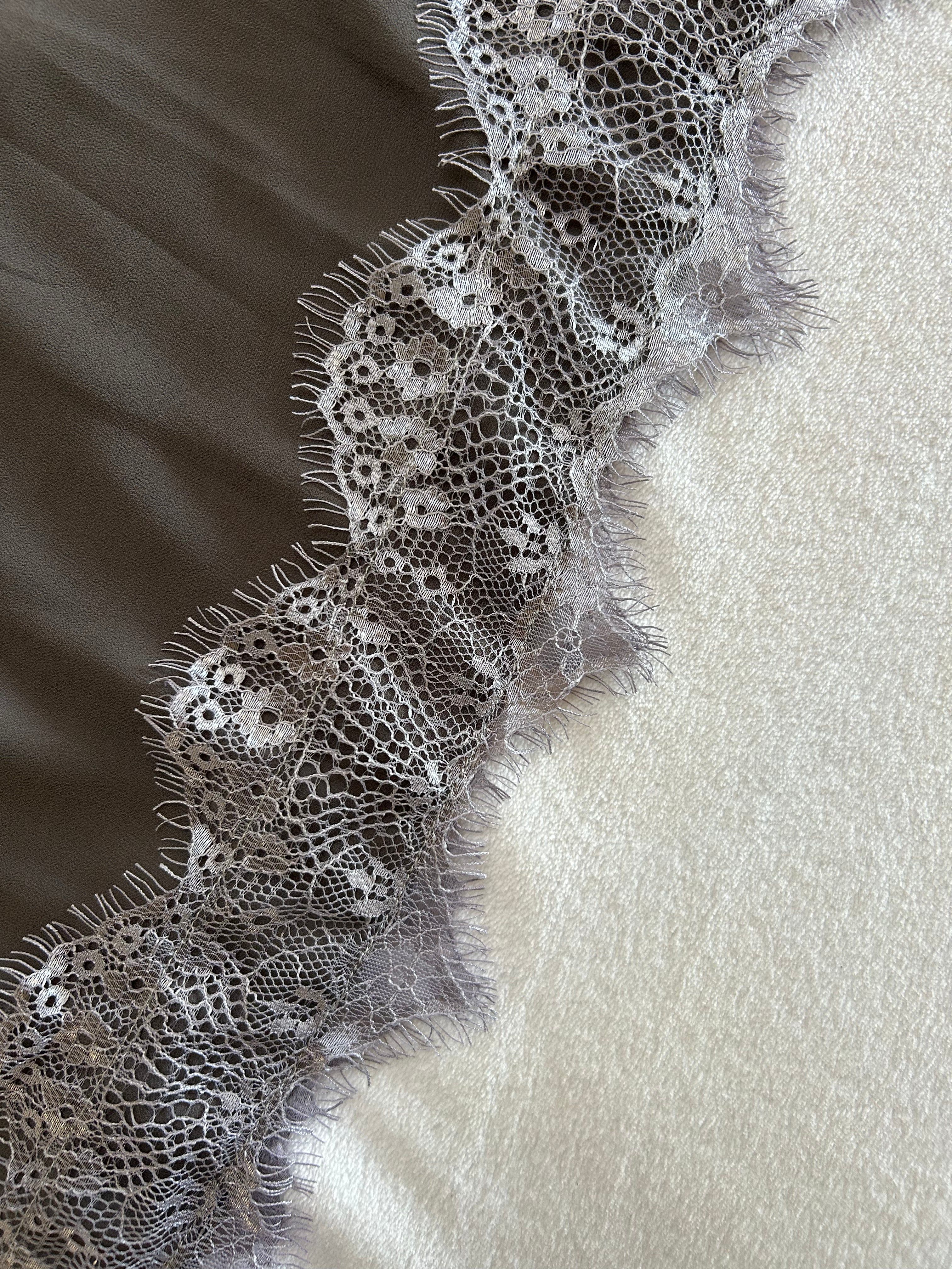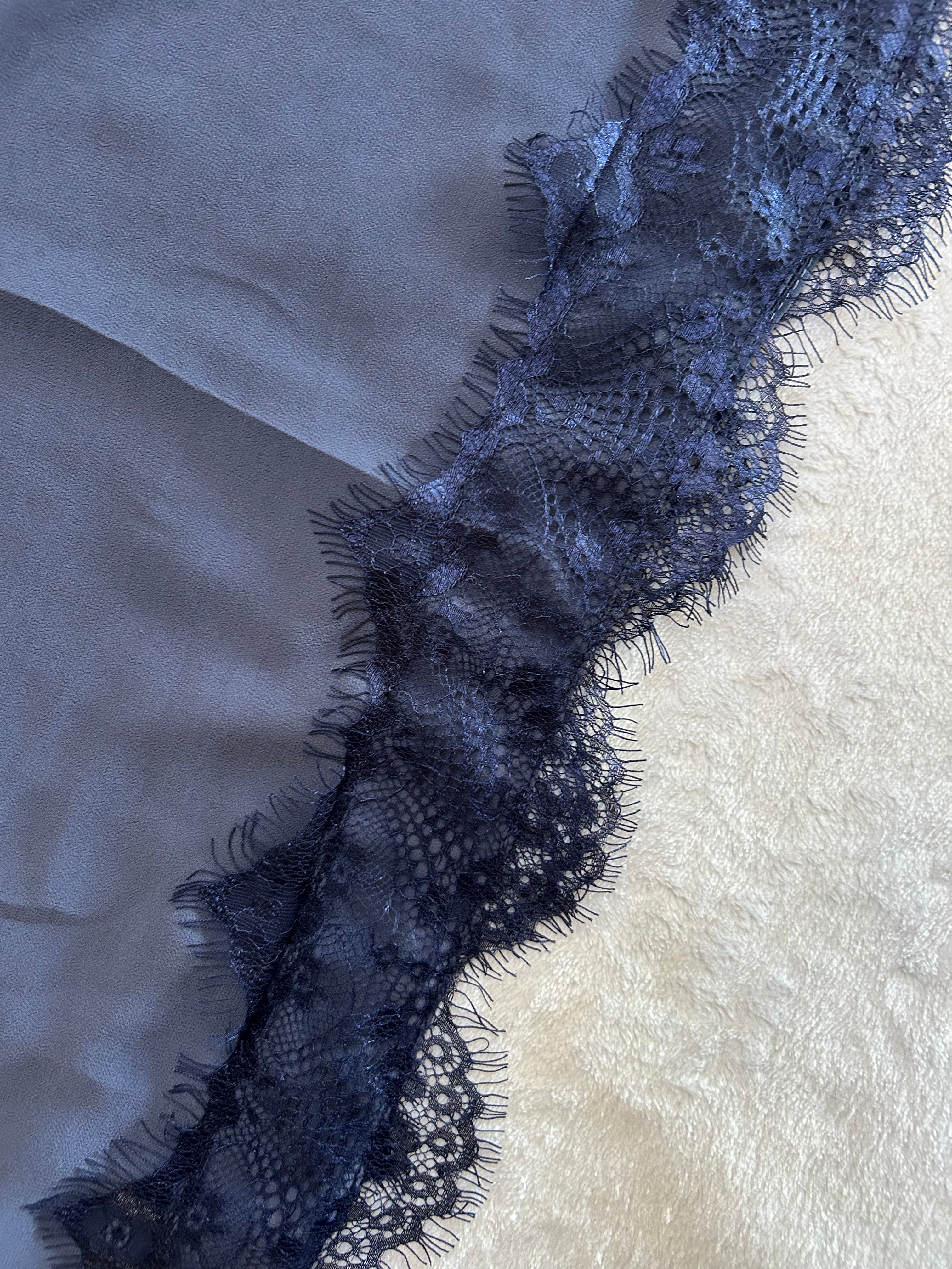 Description: Our Premium Chiffon with a chic lace trim on one long edge. Dress up any outfit with this soft lace finish!