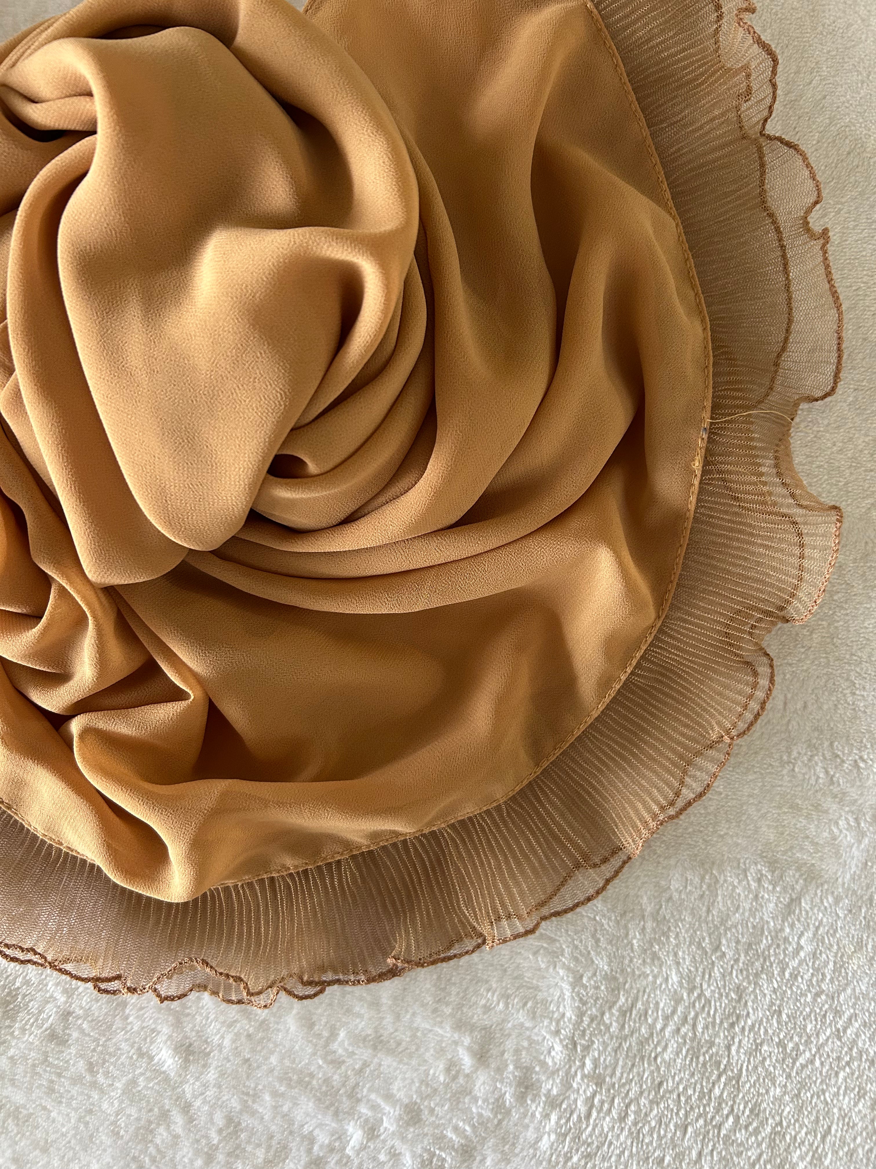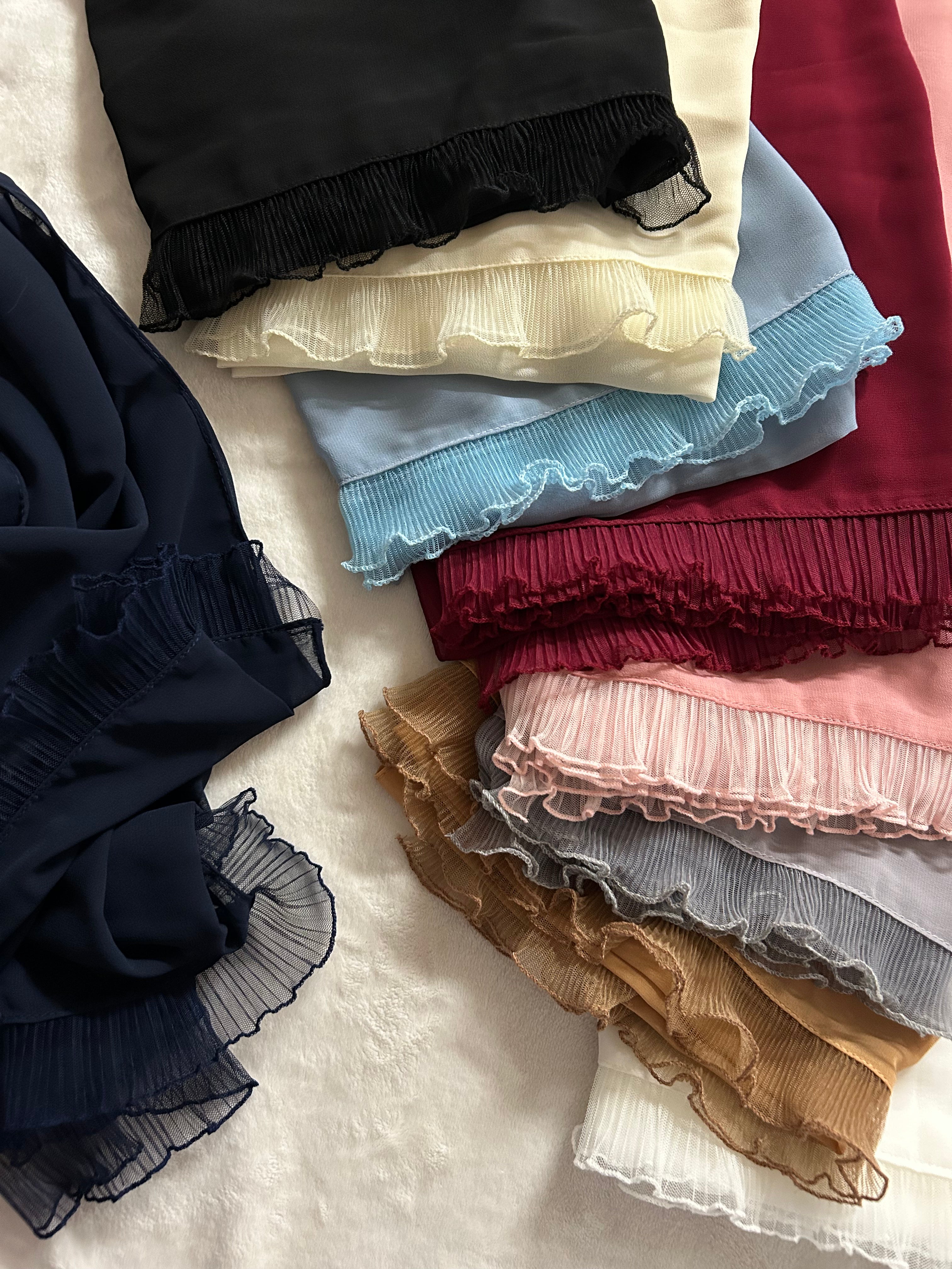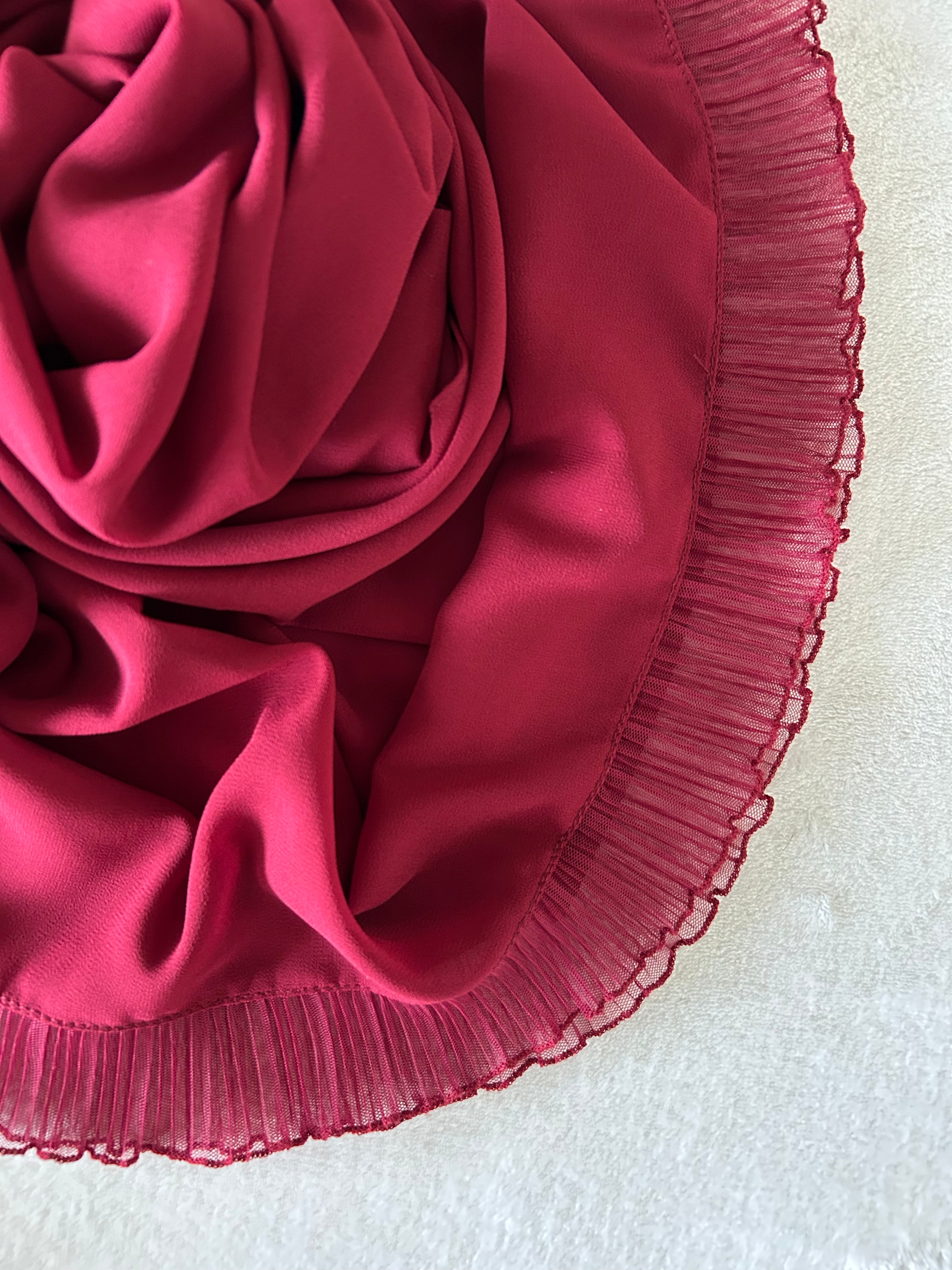 Description: Our Premium Chiffon with a pleated ruffle trim on both short ends. A gorgeous finish to any outfit!