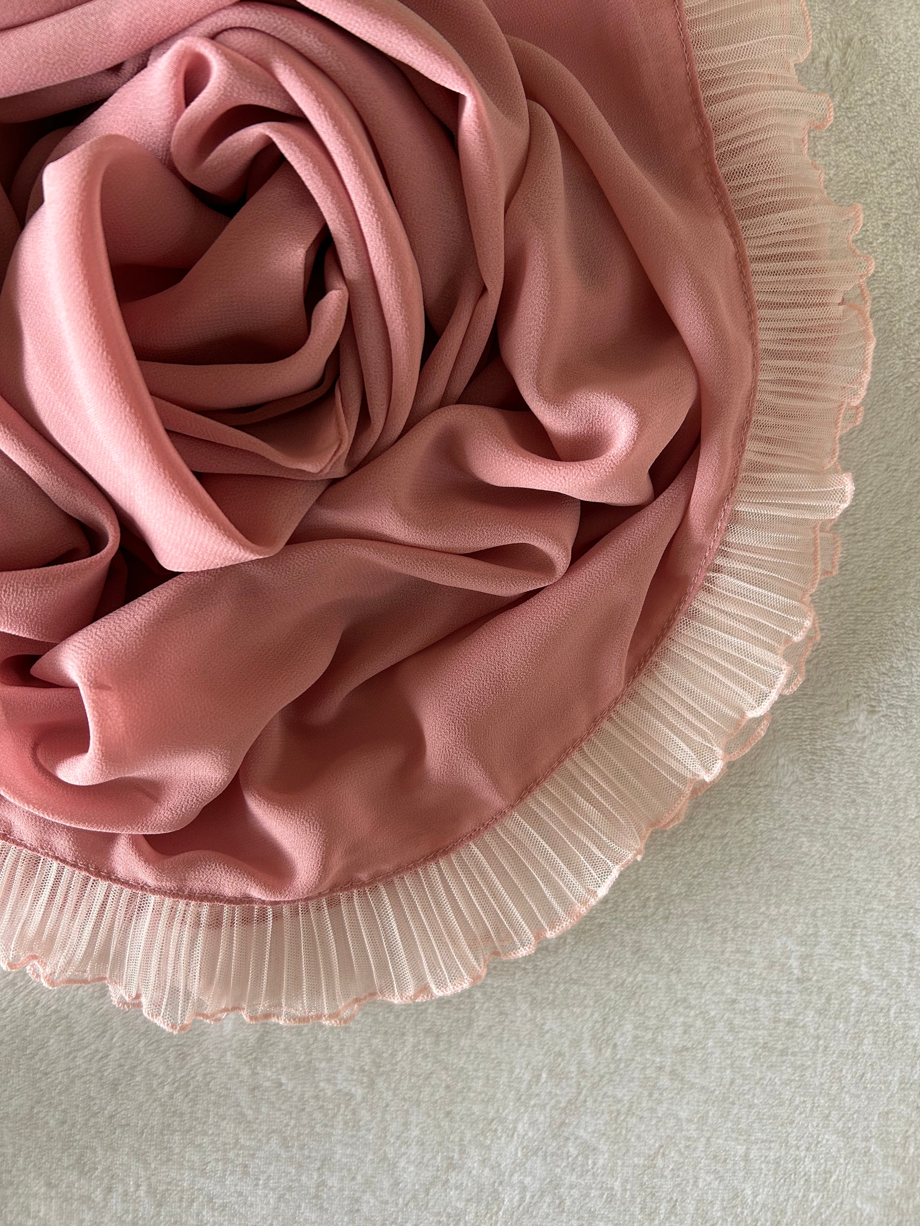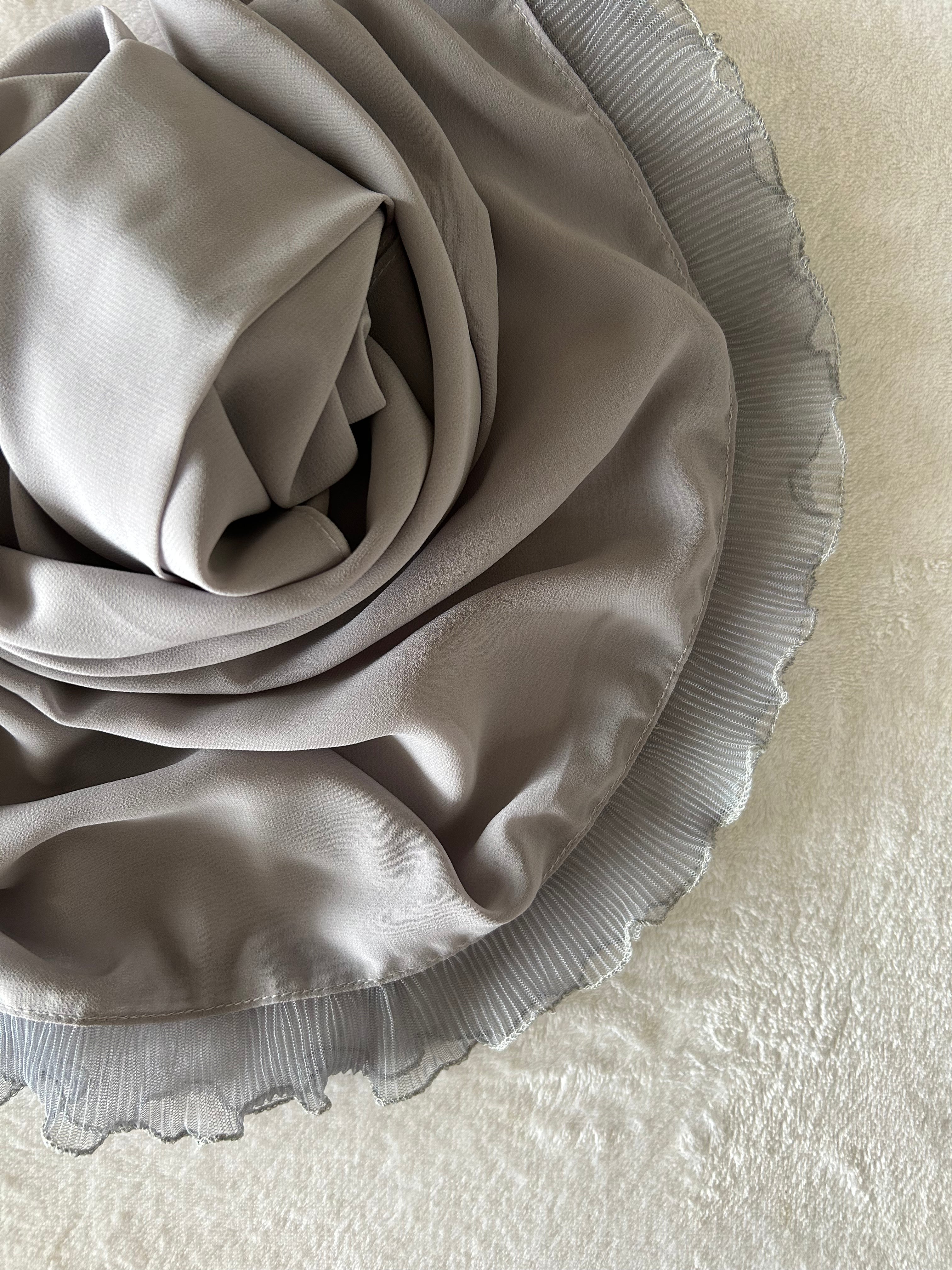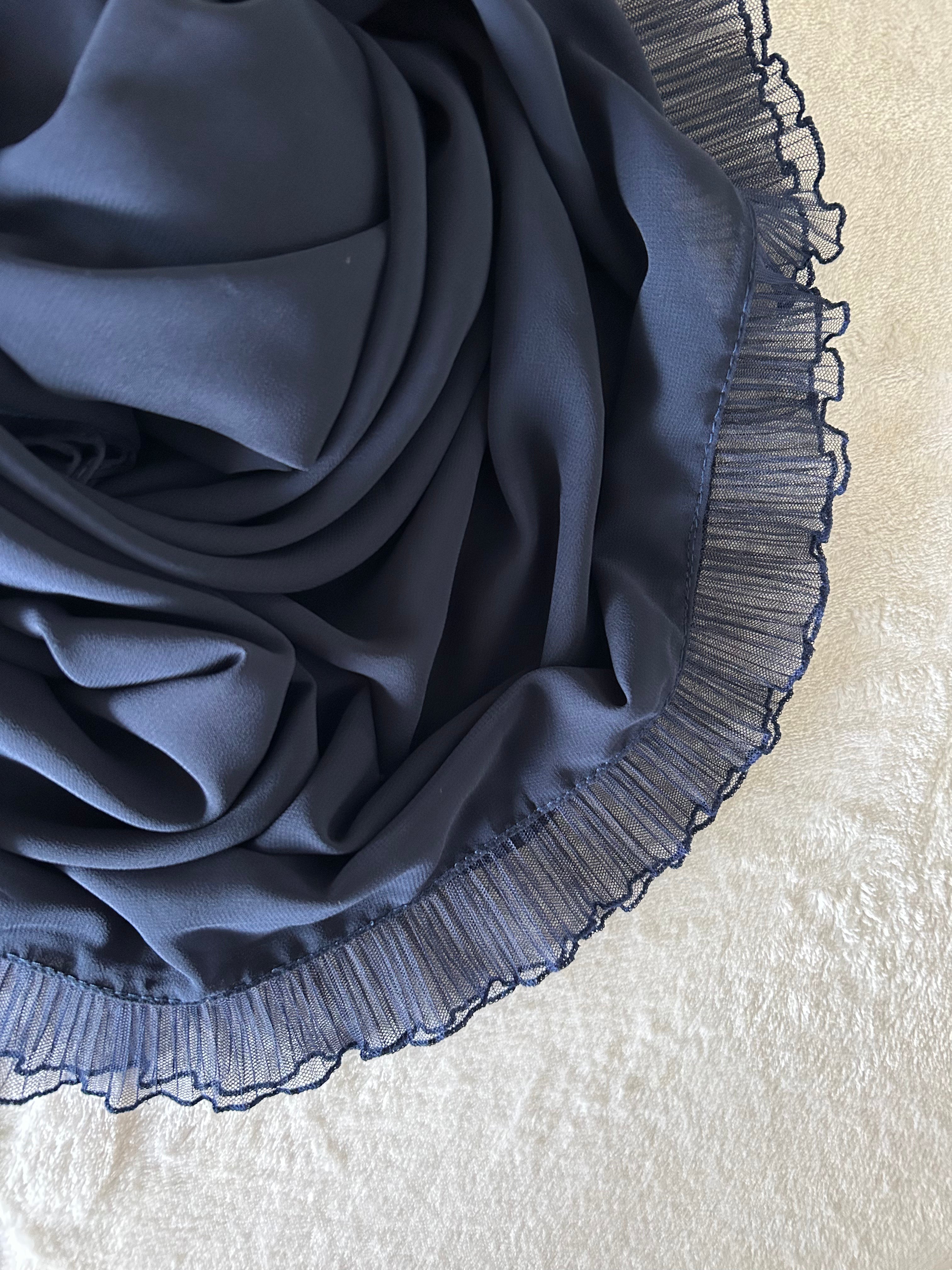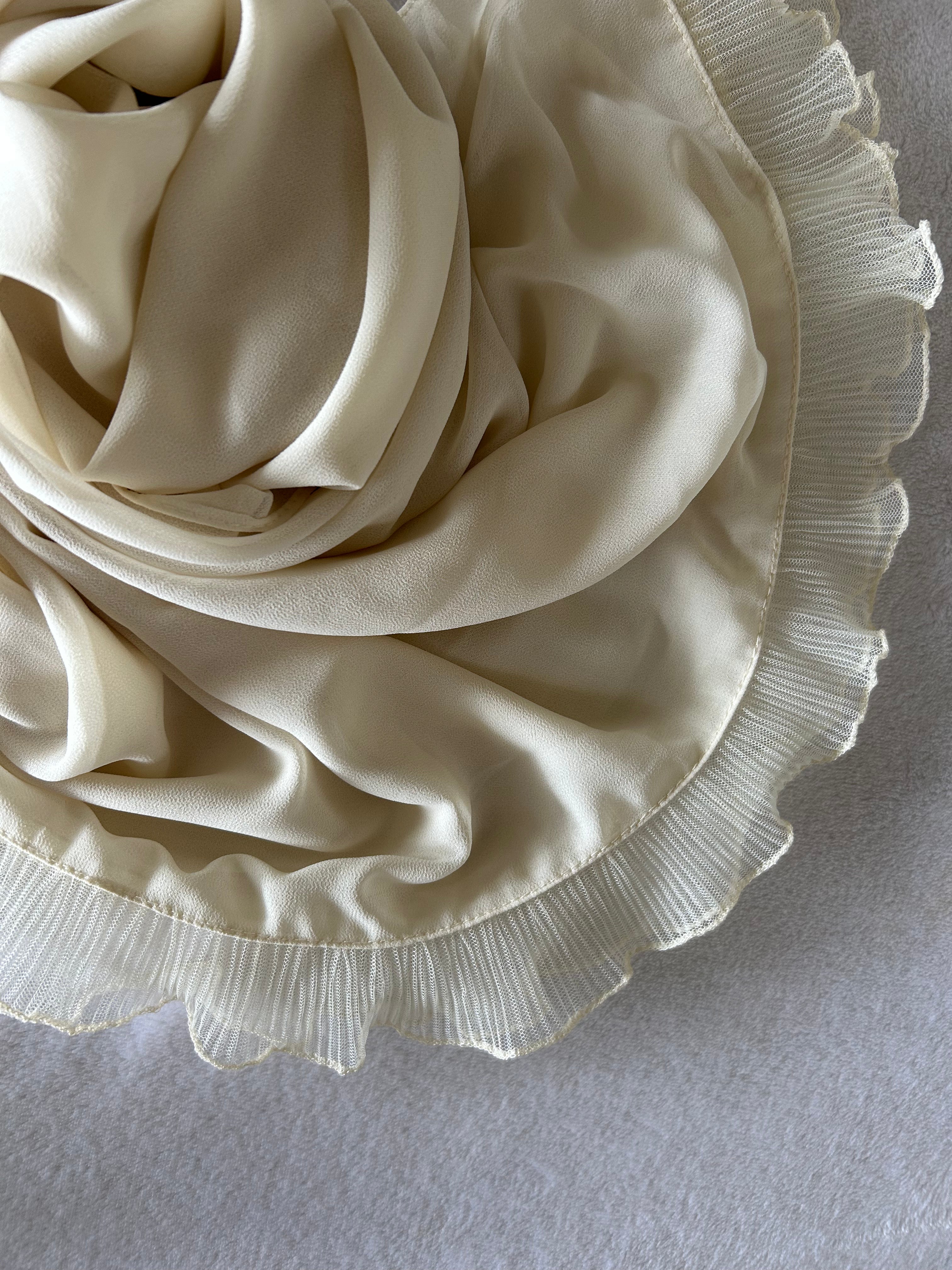 Description: Our Premium Chiffon with a pleated ruffle trim on both short ends. A gorgeous finish to any outfit!