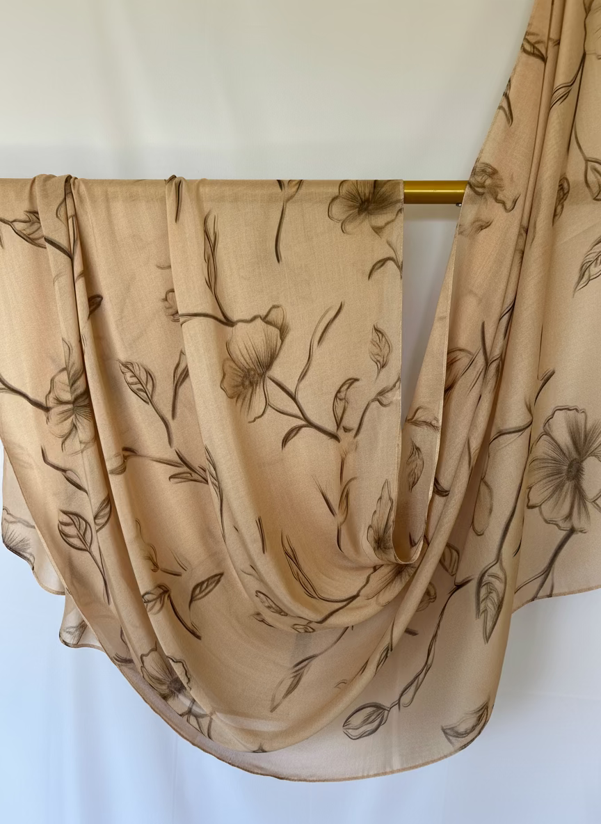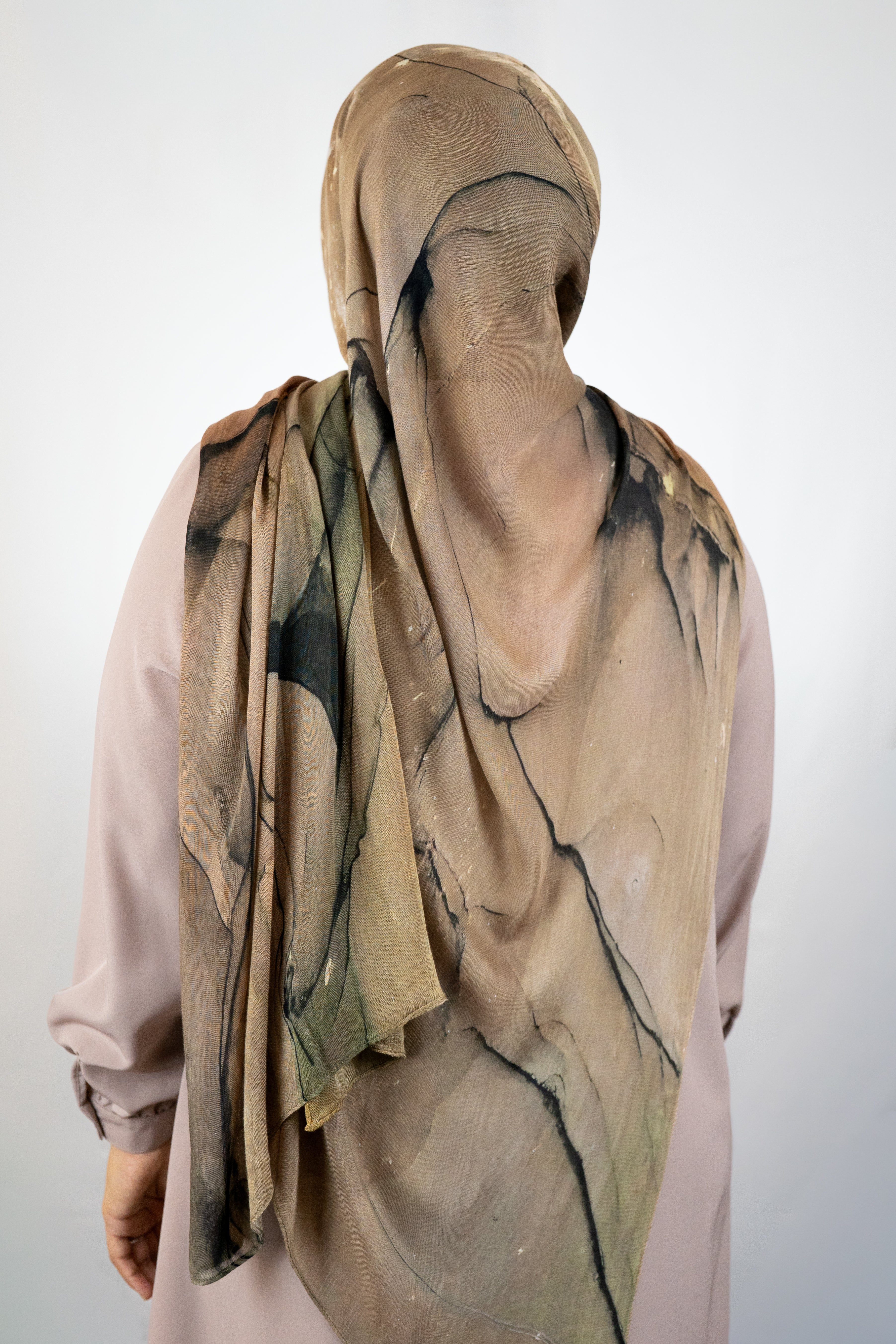 A graceful harmony between earth and air — where nature’s raw textures meet timeless elegance. Each hijab flows like painted stone, mist, or floral whisper, evoking balance and beauty in simplicity. Gorgeous prints in our super popular modal fabric — lightweight, airy, and effortless.