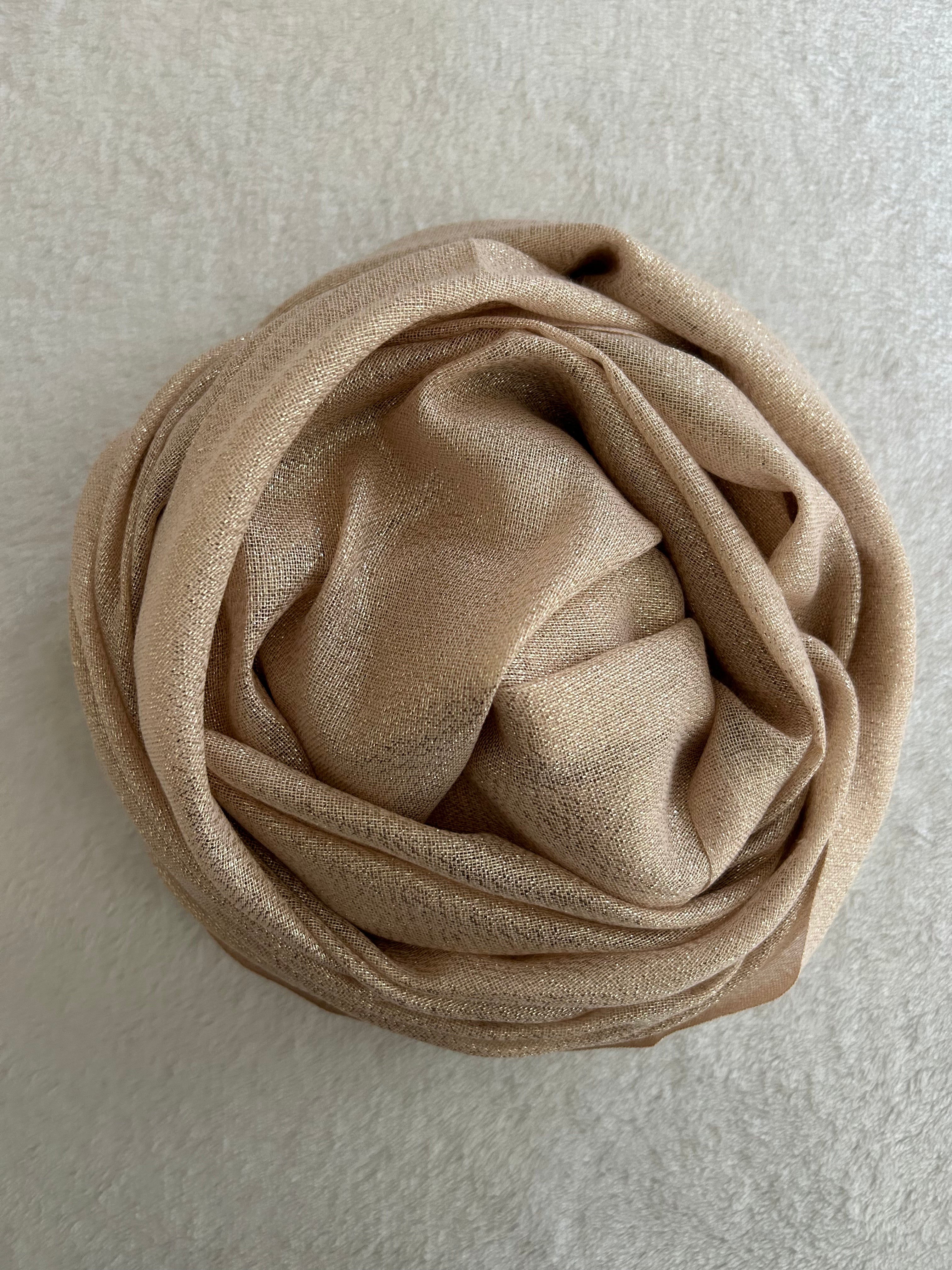 Description: For those of you who want something super light and airy, but also fancy, these will be a go to! This fabric is one that can be thrown on without any pins and you can be assured that they will stay put! In so many versatile color options, these shimmery beauties will complete so many of your fancy outfits!