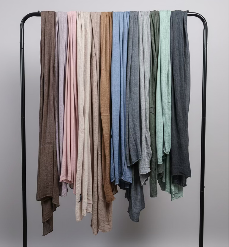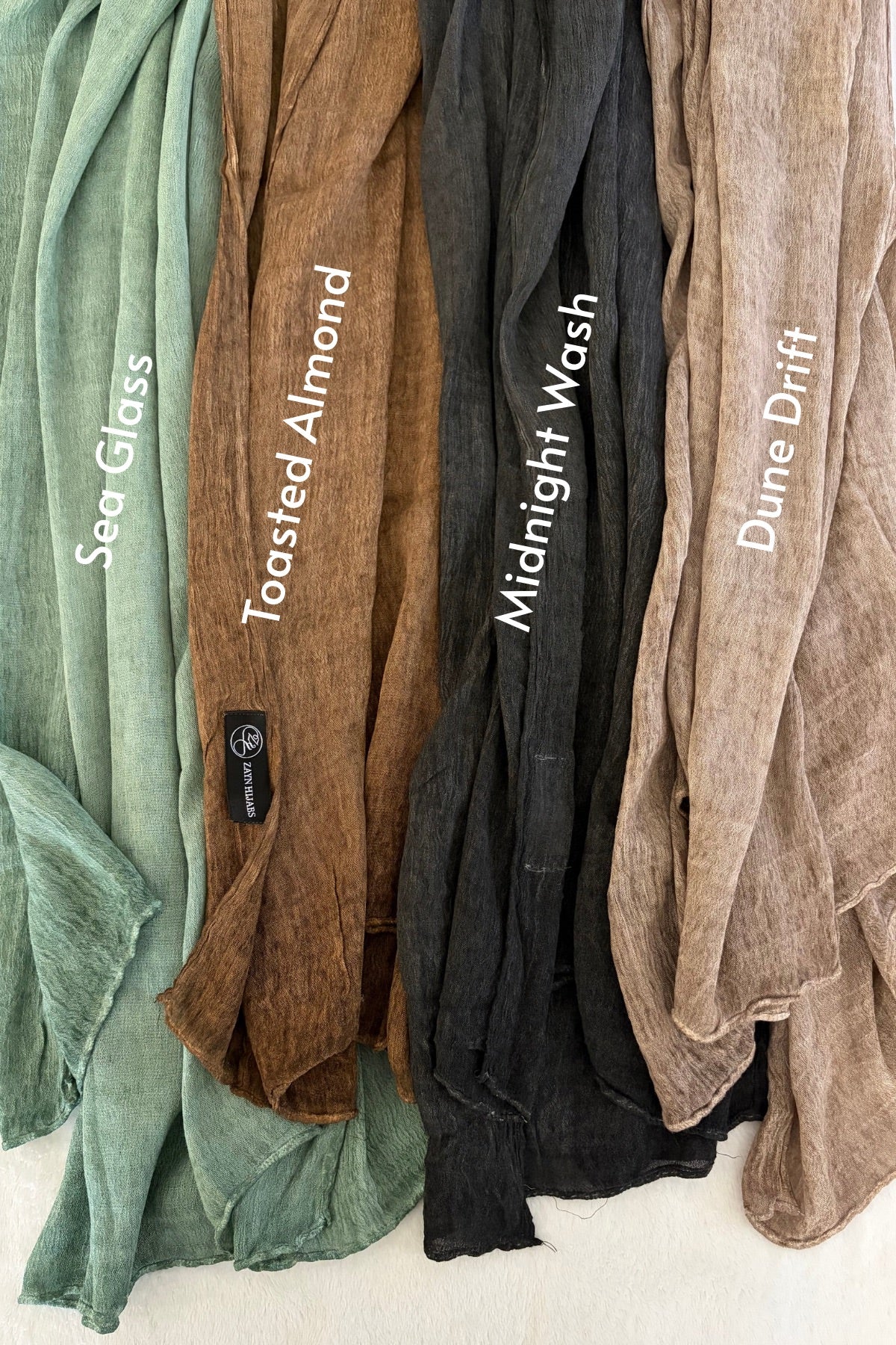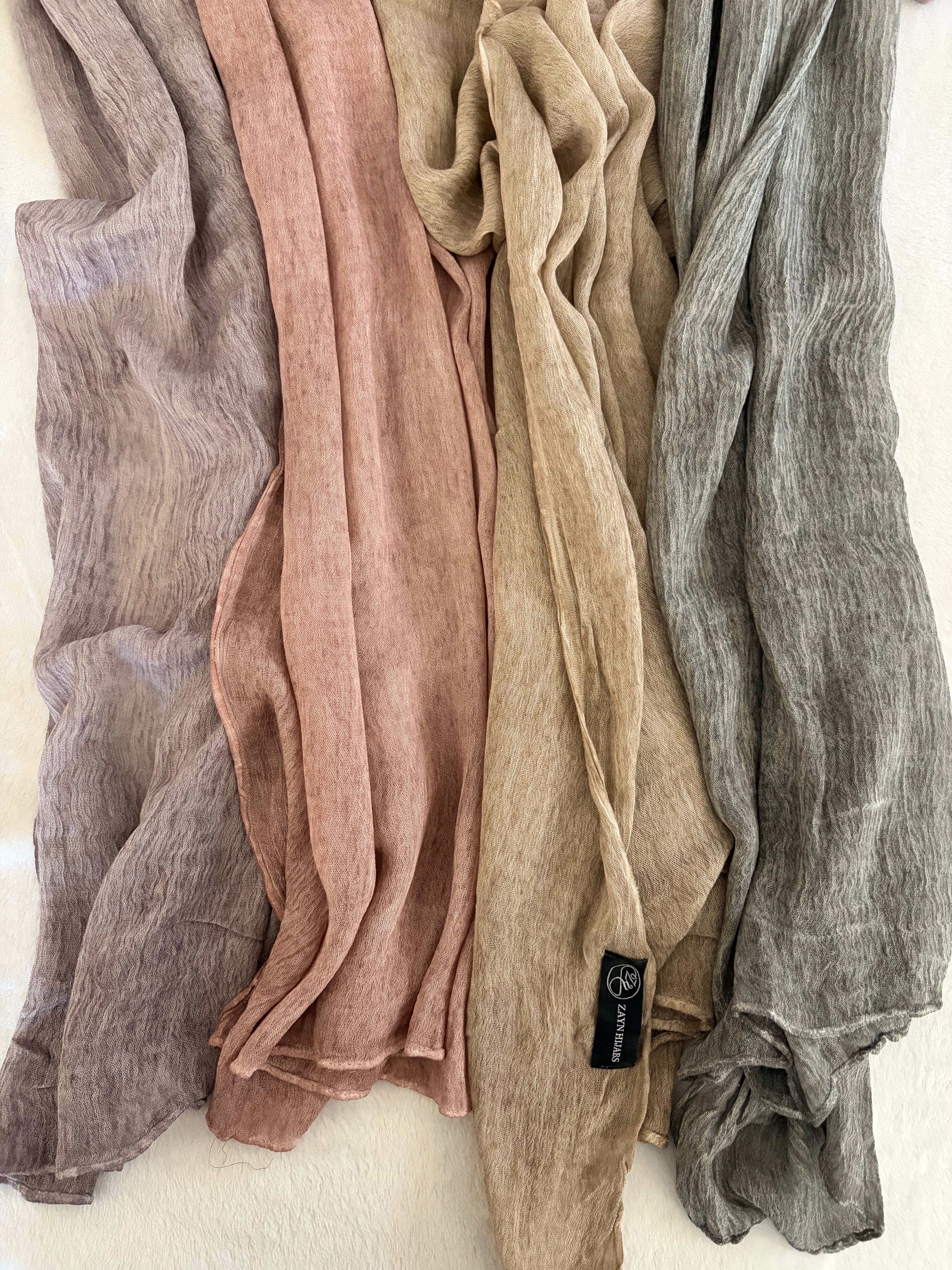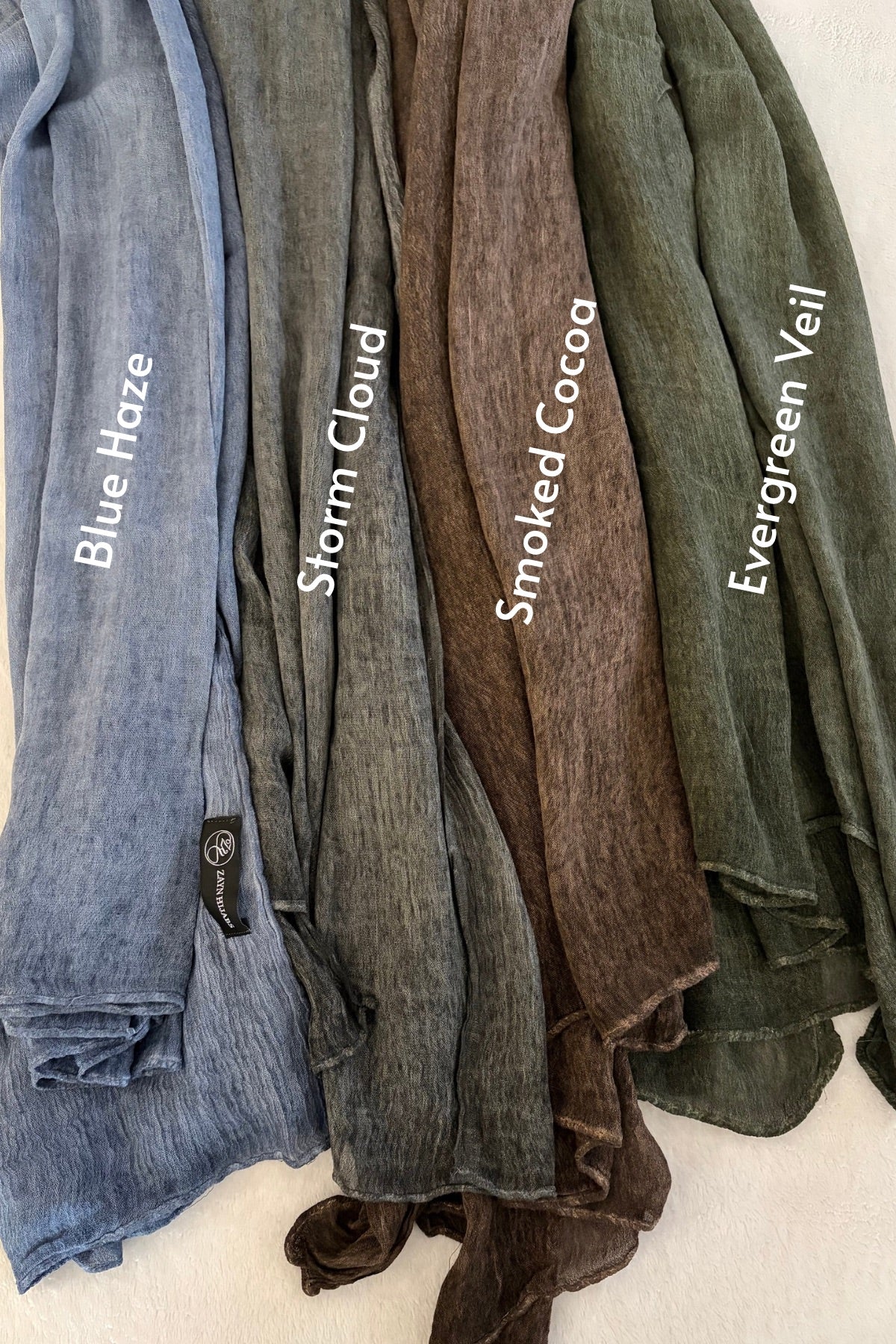 Softly washed, beautifully muted, and effortlessly breathable — Waterveil is where color meets calm. Each hijab is crafted from feather-light viscose with a delicate crinkled texture and a watercolor finish that gives every shade its own unique depth. Designed to drape with ease, these airy scarves feel as light as they look, making them perfect for everyday wear and elevated moments alike.